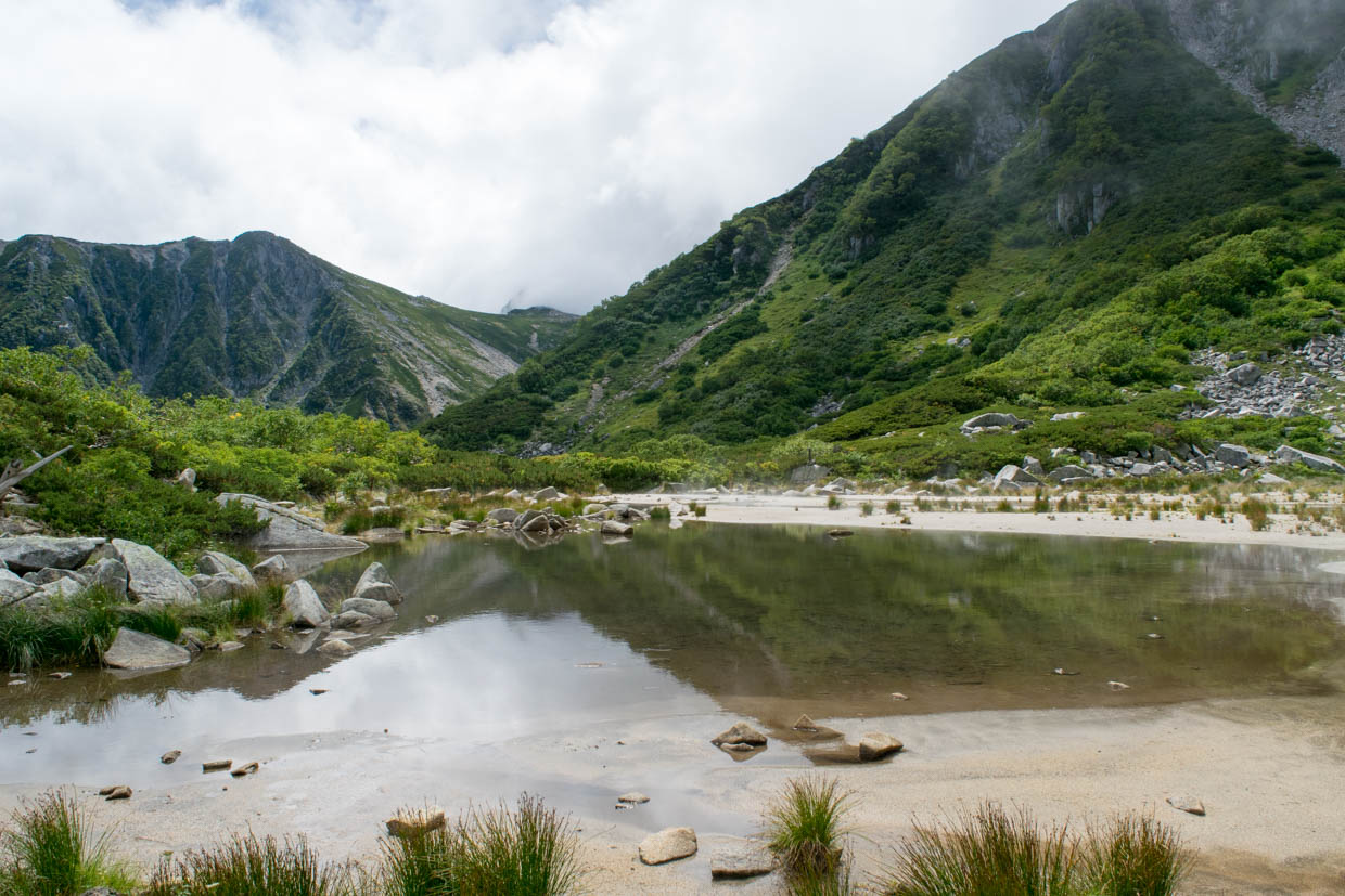 ガスってて、池に映る逆さ宝剣岳は見れなかった。