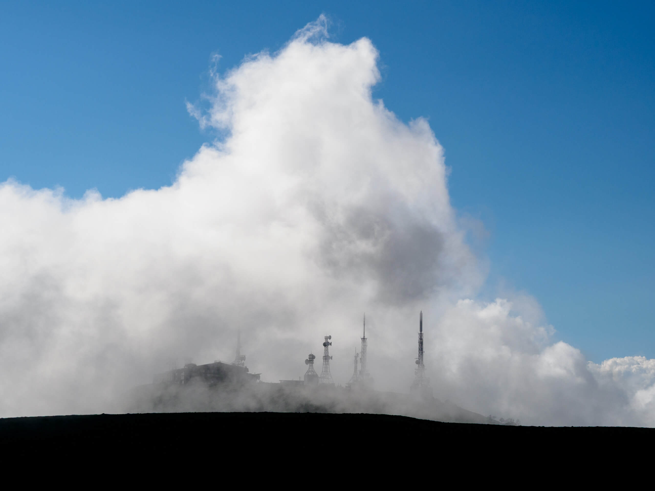 北東は快晴の空に吊るし雲。蓼科山がきっかけかな?