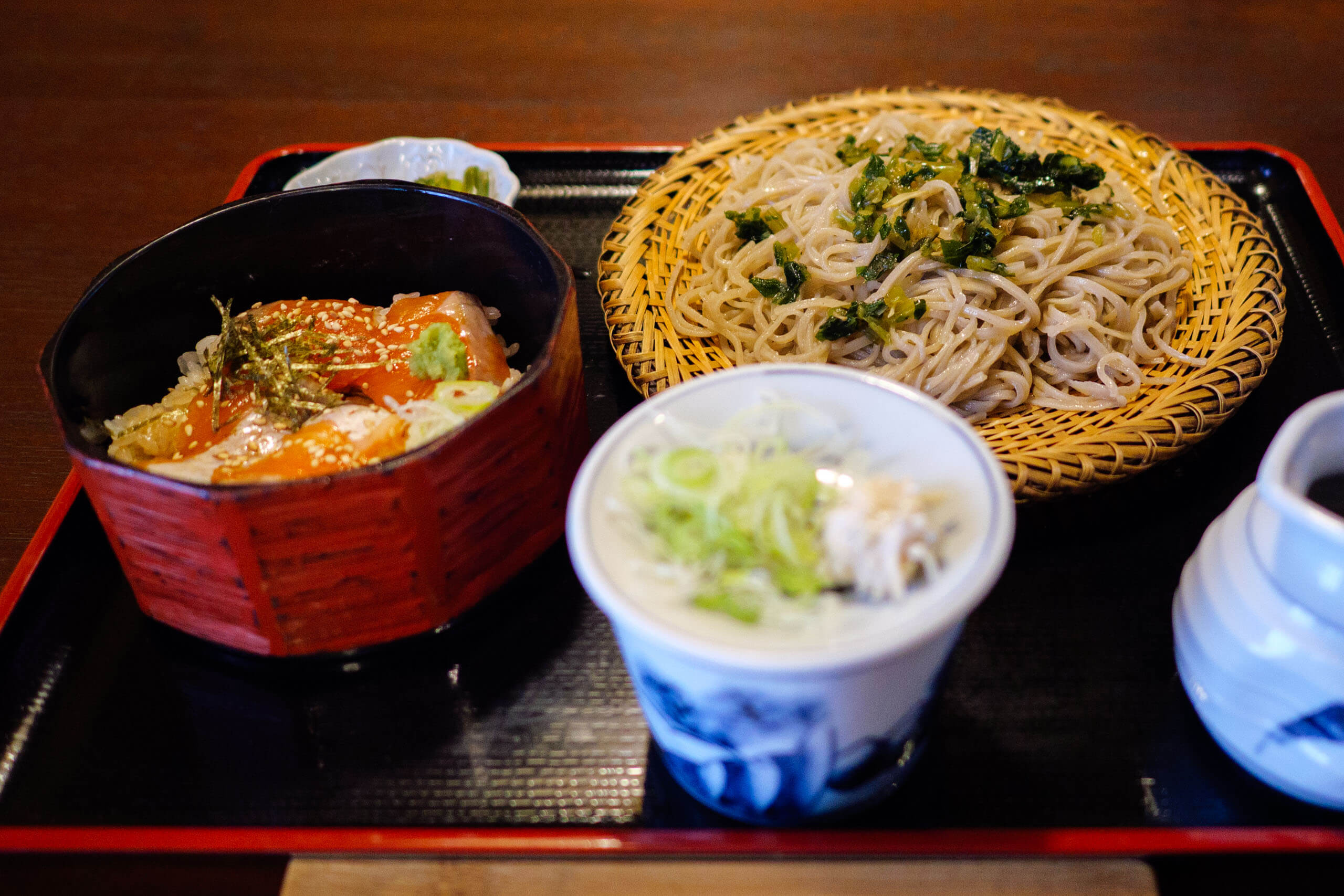 「アルプスわさびそば」と「ミニサーモン丼」を注文