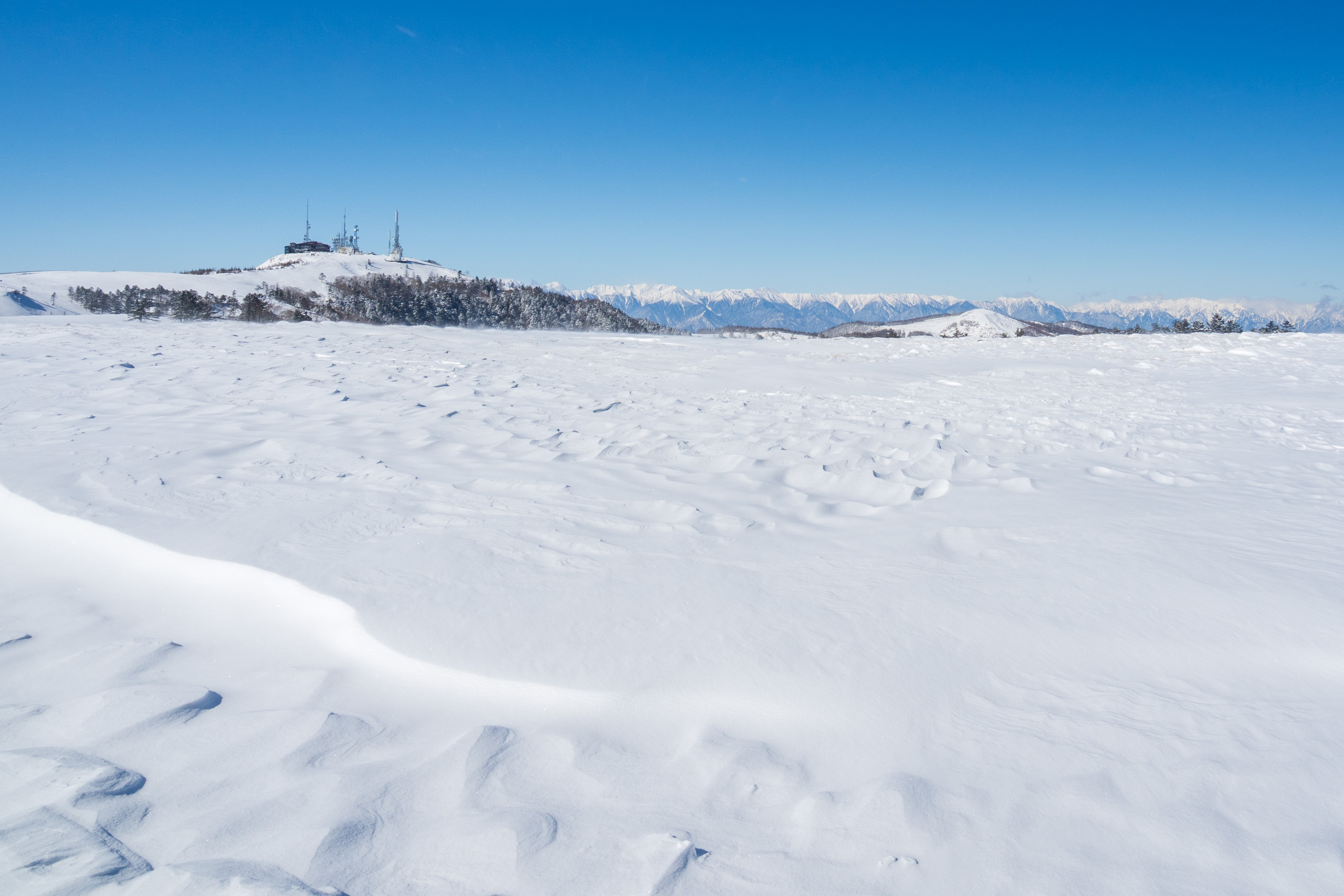 冬季は扉峠からビーナスラインのルートは通行止めなので、国道142号の和田宿から県道178号を使って美ヶ原へ登る。