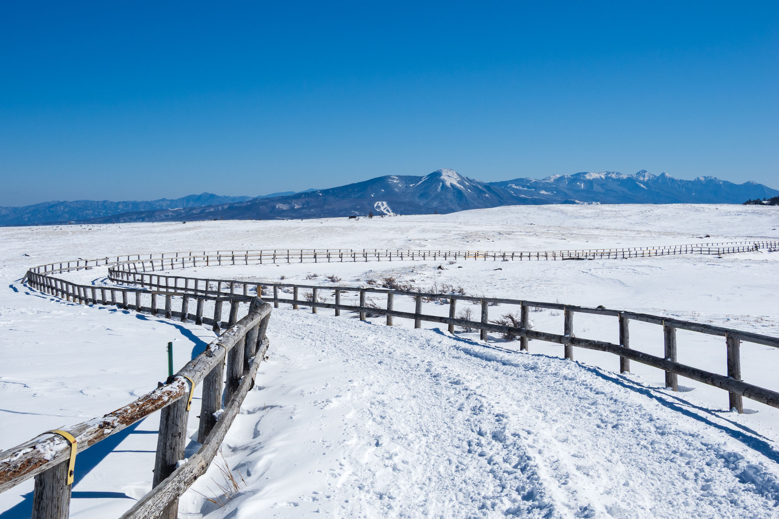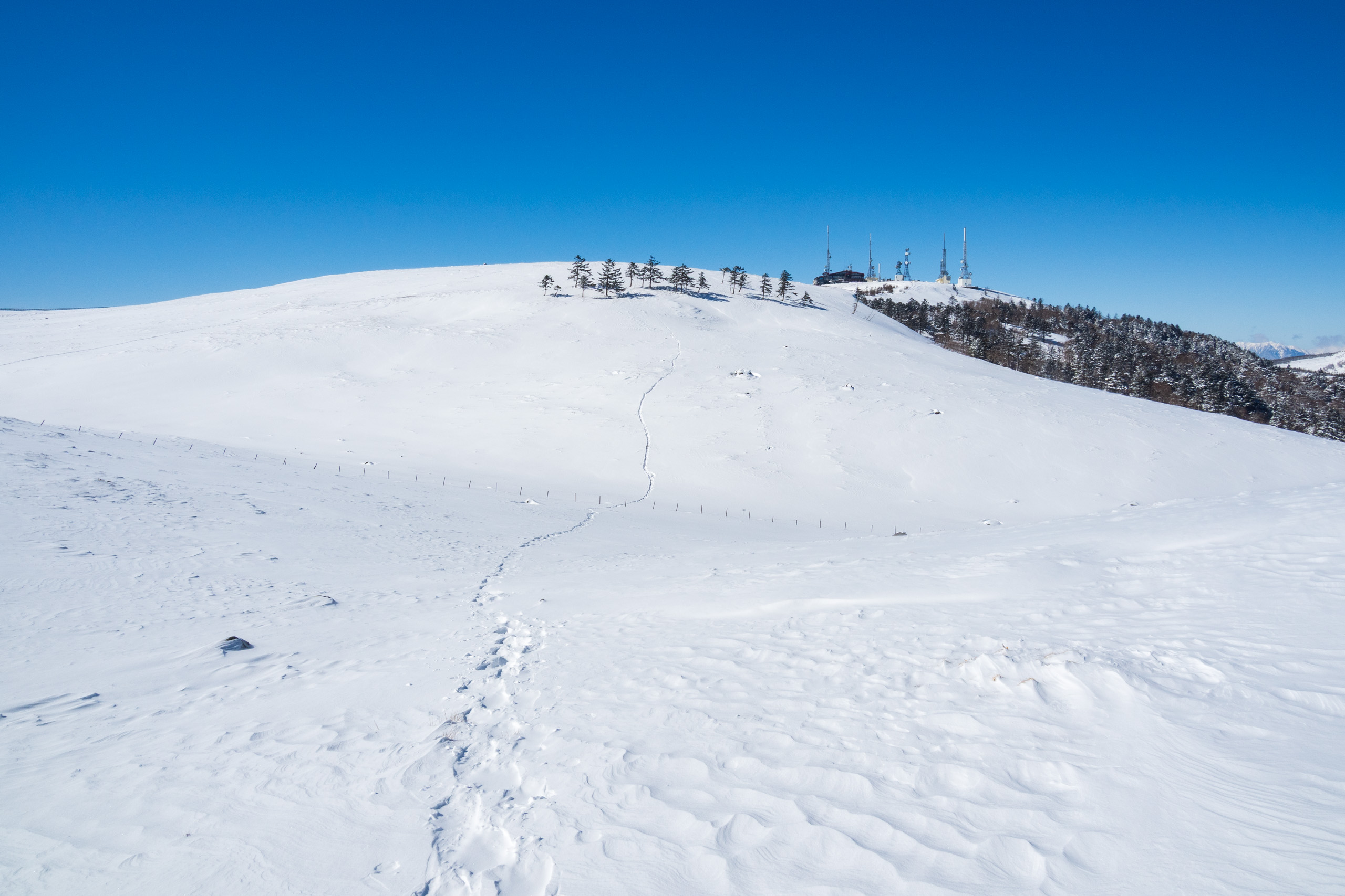 新雪が積もった事だし、美ヶ原の王ヶ頭まで、スノーシューを履いて歩いてきた。