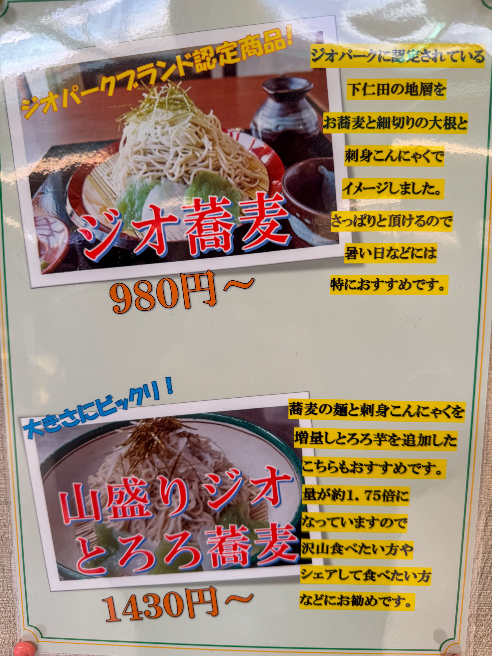 下仁田ジオパークをイメージしたお蕎麦です。